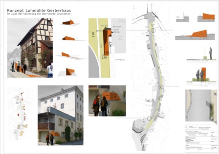 Im Zuge der Sanierung und Neugestaltung der Dorfstraße, ergab sich die Möglichkeit den steilen, unsicheren Abgang zum Museum Lohmühle neu anzulegen. Dabei wurde die Gestaltung des Abgangs an die neue Beschilderung angepasst, so ist dieser gleichzeitig Zugang zum Museum und Informationsträger. Durch die neue Gestaltung ist für Gäste im Ort die Verbindung von Lohmühle und Gerberhaus erlebbar. An den Gebäuden selbst wird deren Funktion und Geschichte im Ort beschrieben und die Schilder auf dem Weg dazwischen beschreiben die historischen Wegebeziehungen und Tätigkeiten zwischen den einzelnen Gebäuden.